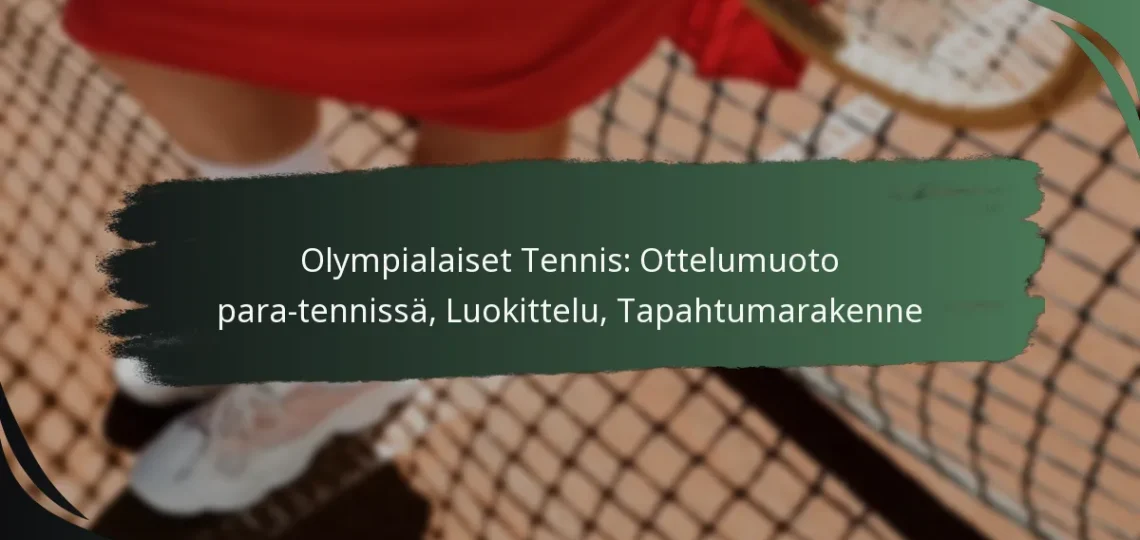 Paratennis olympialaisissa sisältää rakenteellisen ottelumuodon, joka on suunniteltu huomioimaan vammaisten urheilijoiden tarpeet säilyttäen samalla lajin ytimen. Luokittelu perustuu perusteelliseen arviointiin urheilijoiden fyysisistä ja toiminnallisista kyvyistä, varmistaen tasapuolisen kilpailun. Tapahtumarakenne sisältää sekä yksilö- että paripelit, edeten eliminointikierrosten kautta huipentuen finaaleihin, joissa kilpaillaan mitaleista.