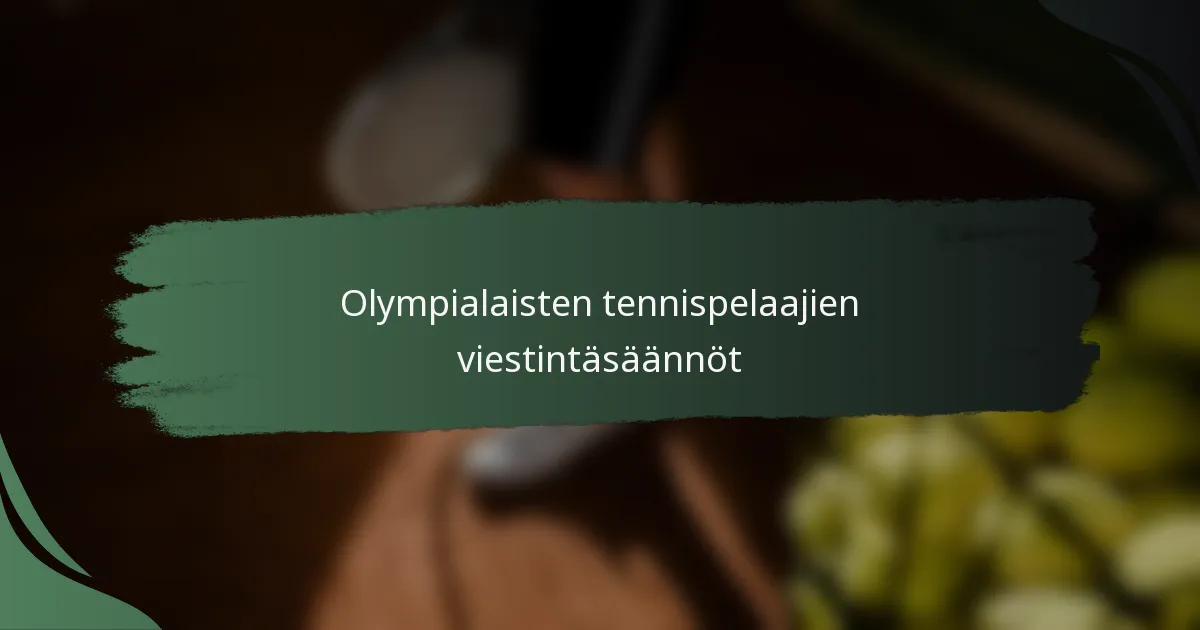 Olympialaisten tennispelaajien viralliset viestintäsäännöt on laatinut Kansainvälinen Tennisliitto (ITF) ja ne keskittyvät reilun pelin ja selkeiden vuorovaikutusten ylläpitämiseen otteluiden aikana. Nämä säännöt kattavat viestinnän pelaajien, tuomareiden ja valmentajien välillä, varmistaen, että kaikki osapuolet ymmärtävät roolinsa ja vastuunsa kilpailun aikana.