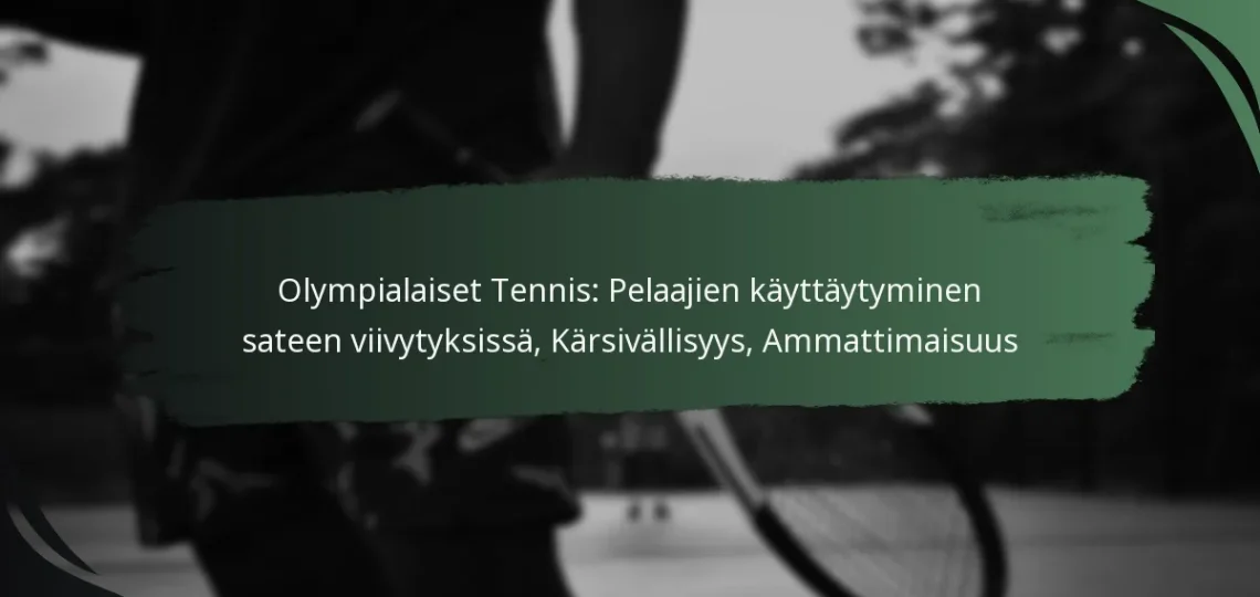 Olympialaisissa tenniksessä pelaajien käyttäytymistä sateen aiheuttamien taukojen aikana säätelevät Kansainvälisen Tennisliiton (ITF) asettamat säännöt, jotka korostavat kärsivällisyyden ja ammattimaisuuden tärkeyttä. Urheilijoita kannustetaan käyttämään tunteiden säätelytekniikoita ja urheiluhenkeä näiden keskeytysten aikana, varmistaen, että he pysyvät rauhallisina ja keskittyneinä suoritukseensa. Hyödyntämällä psykologisia strategioita, kuten visualisointia ja rentoutumista, pelaajat voivat tehokkaasti hallita sään aiheuttamia viivästyksiä samalla kun he säilyttävät integriteettinsä kentällä.