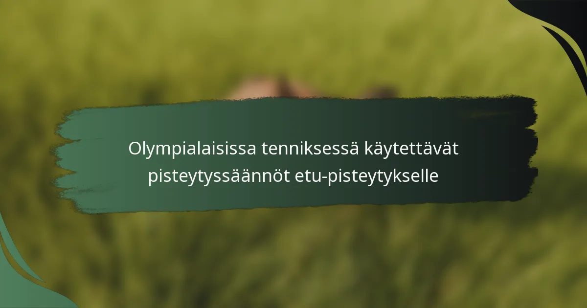 Olympiatenniksen laskentajärjestelmä hyödyntää ainutlaatuista edun laskemisen järjestelmää, joka eroaa sekä Grand Slam- että ATP/WTA-tapahtumien säännöistä. Tämä laskentatapa korostaa kilpailullista eheyden säilyttämistä, mutta tuo myös mukanaan erityisiä haasteita ja etuja pelaajille.